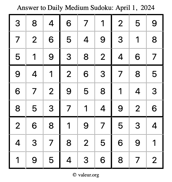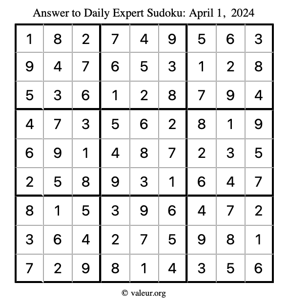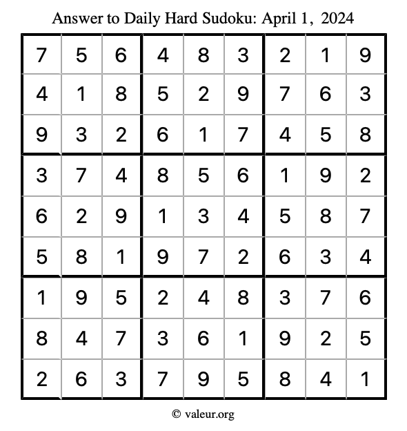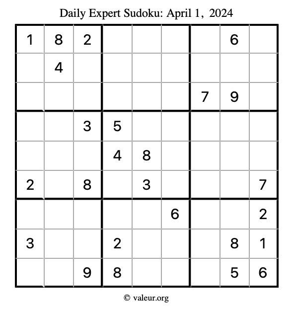 Here are the April 1, 2024 daily four sudoku puzzles. You are welcome to print a copy of the puzzles and solve them by hand. For your convenience, we have also included the solutions further down the page so you can check your work.