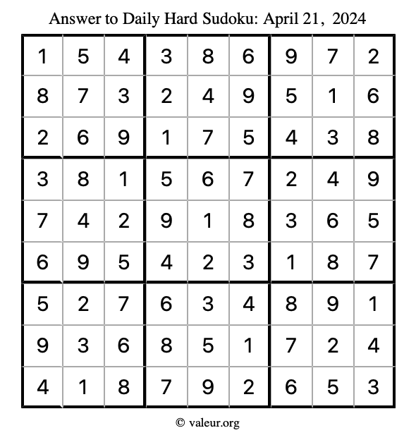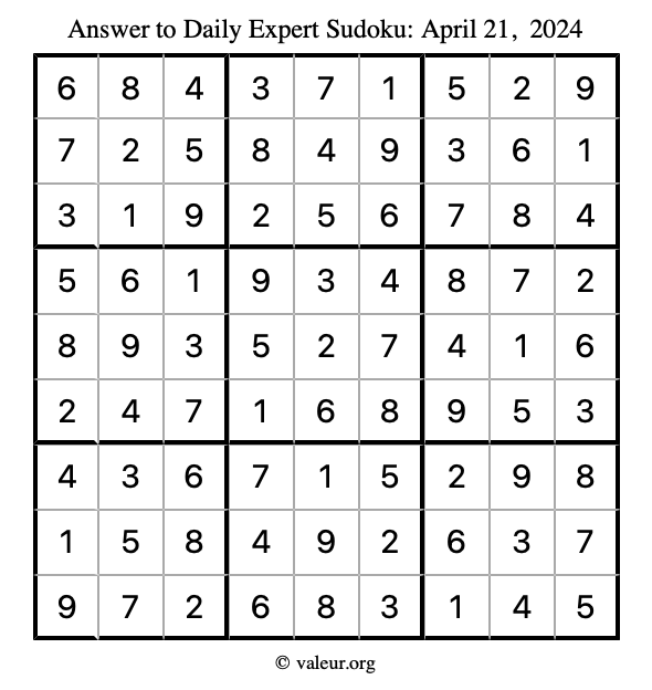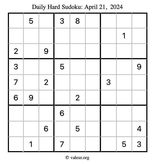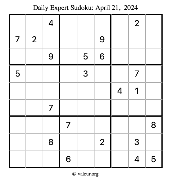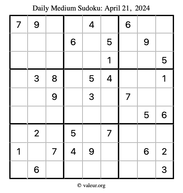 Daily Four Sudoku Puzzles April 21, 2024 is not the only daily set of sudoku puzzles we have. We create four sudoku puzzles every day for you to print and solve. Check out today's set of four sudoku puzzles here!
