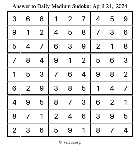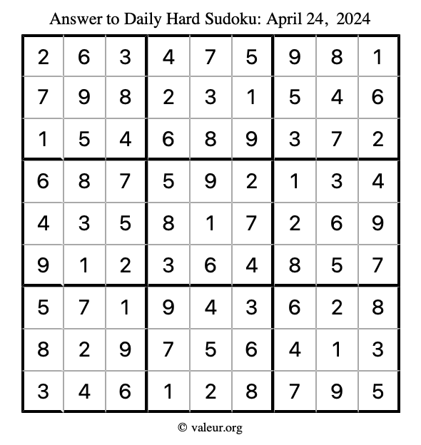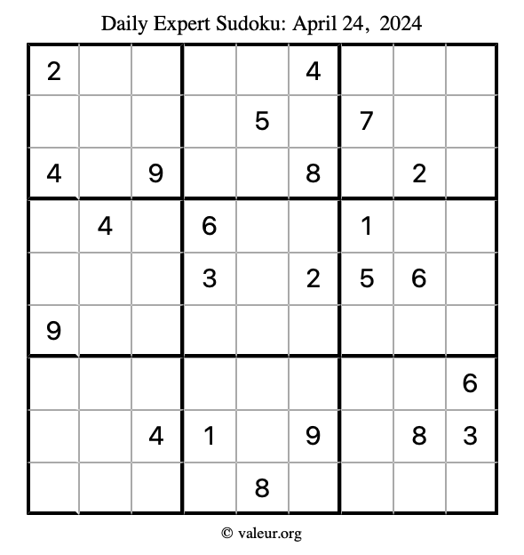 Daily Four Sudoku Puzzles April 24, 2024 is not the only daily set of sudoku puzzles we have. We create four sudoku puzzles every day for you to print and solve. Check out today's set of four sudoku puzzles here!