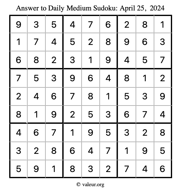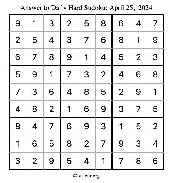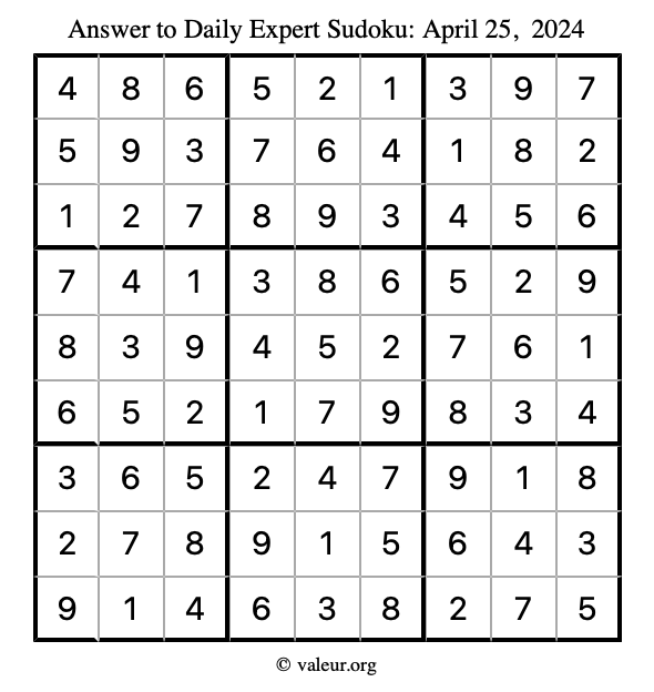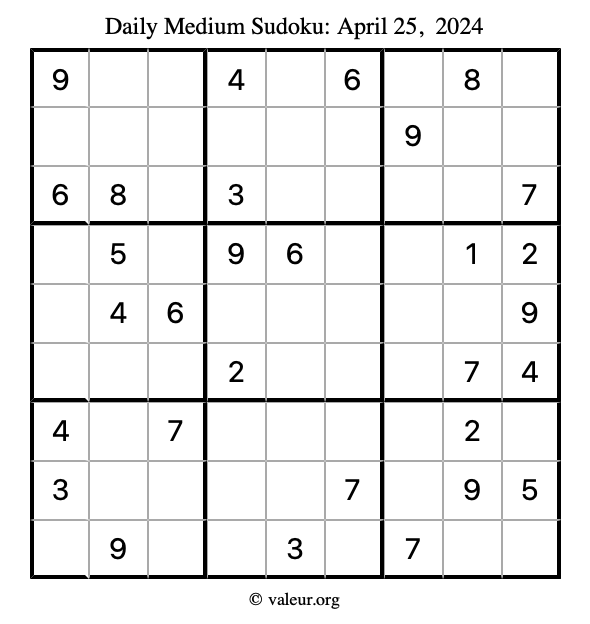 Daily Four Sudoku Puzzles April 25, 2024 is not the only daily set of sudoku puzzles we have. We create four sudoku puzzles every day for you to print and solve. Check out today's set of four sudoku puzzles here!