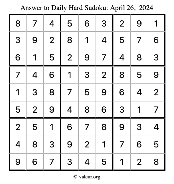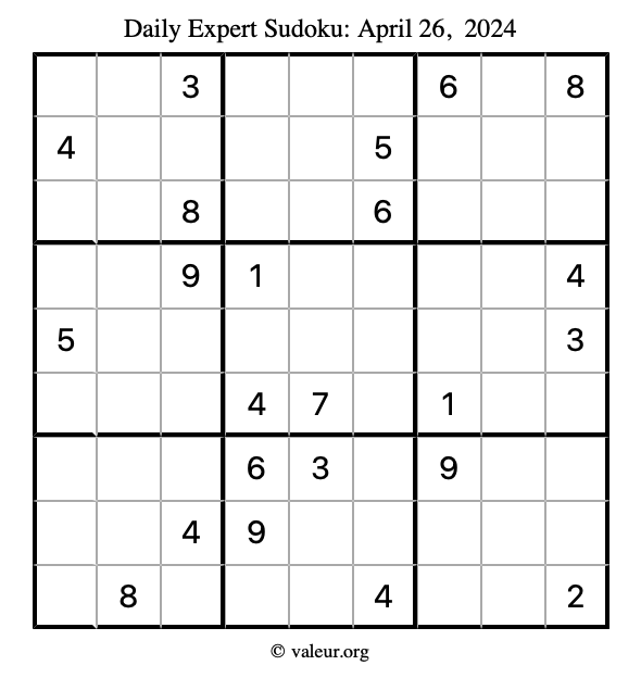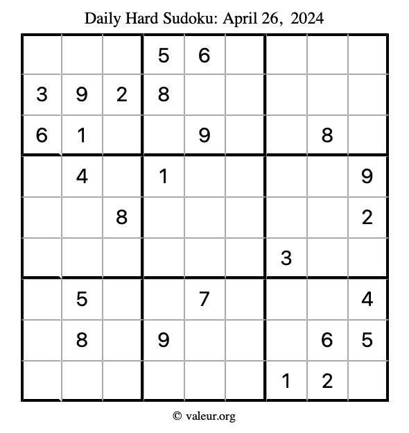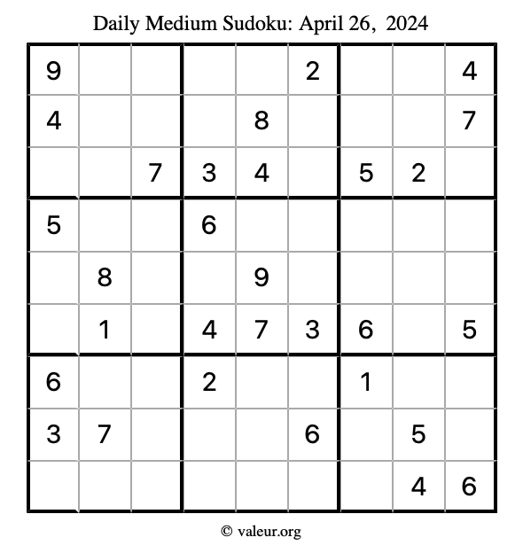 Daily Four Sudoku Puzzles April 26, 2024 is not the only daily set of sudoku puzzles we have. We create four sudoku puzzles every day for you to print and solve. Check out today's set of four sudoku puzzles here!