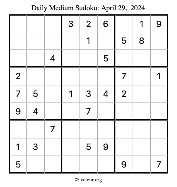 Daily Four Sudoku Puzzles April 29, 2024 is not the only daily set of sudoku puzzles we have. We create four sudoku puzzles every day for you to print and solve. Check out today's set of four sudoku puzzles here!