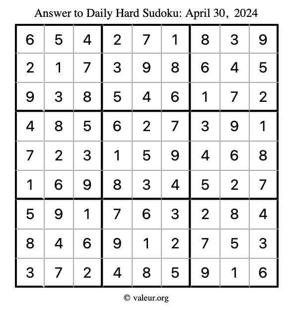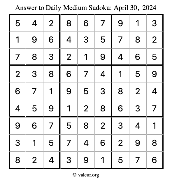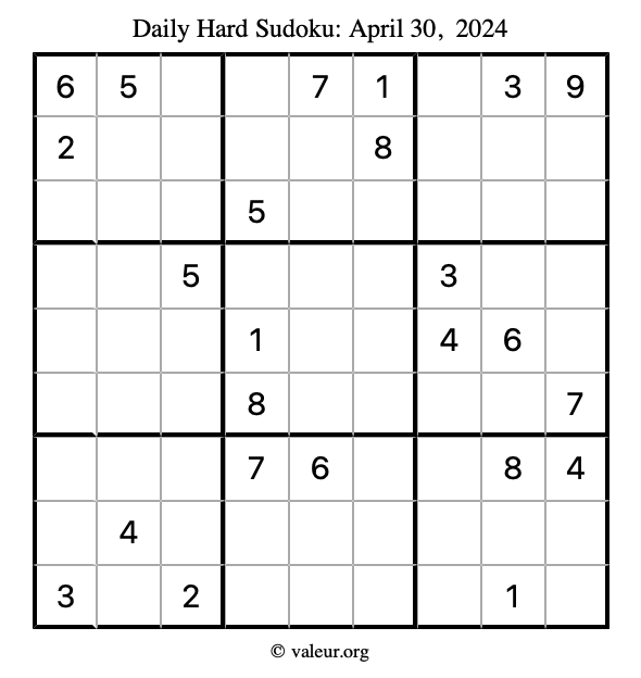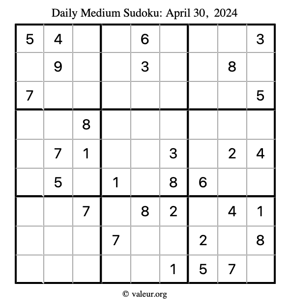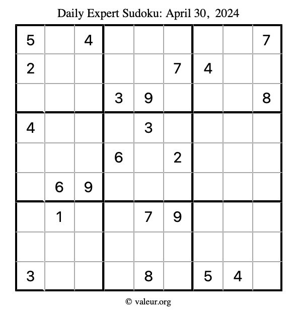 Daily Four Sudoku Puzzles April 30, 2024 is not the only daily set of sudoku puzzles we have. We create four sudoku puzzles every day for you to print and solve. Check out today's set of four sudoku puzzles here!