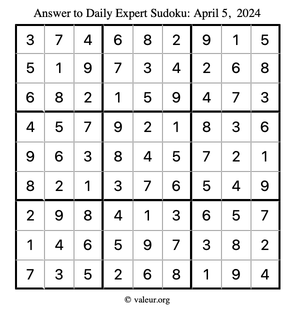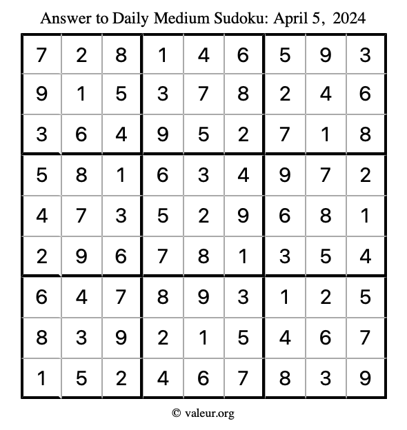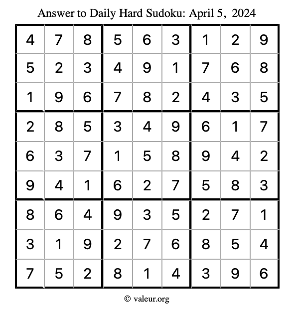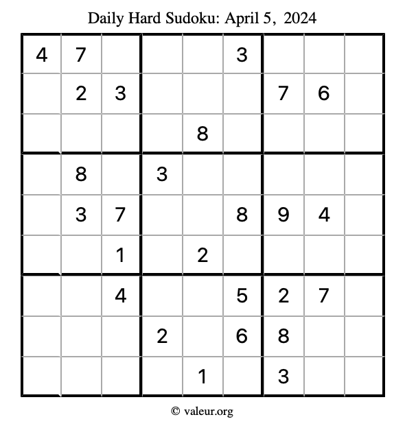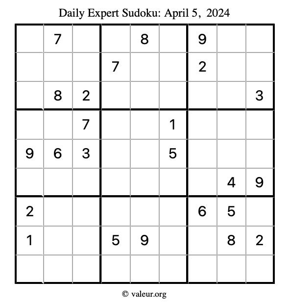 Daily Four Sudoku Puzzles April 5, 2024 is not the only daily set of sudoku puzzles we have. We create four sudoku puzzles every day for you to print and solve. Check out today's set of four sudoku puzzles here!