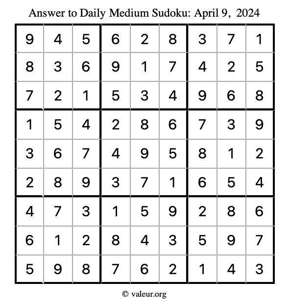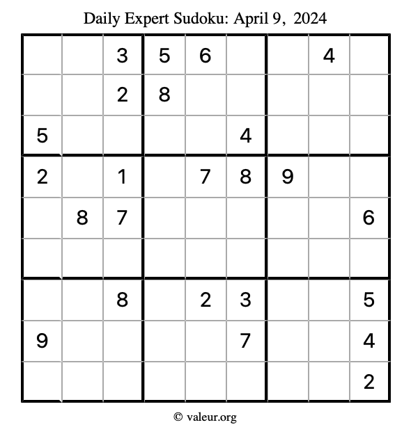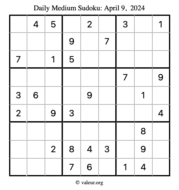 Daily Four Sudoku Puzzles April 9, 2024 is not the only daily set of sudoku puzzles we have. We create four sudoku puzzles every day for you to print and solve. Check out today's set of four sudoku puzzles here!