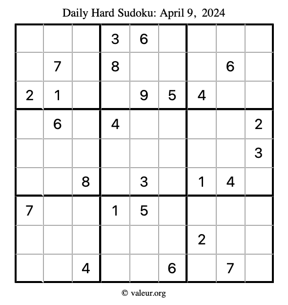 Here are the April 9, 2024 daily four sudoku puzzles. You are welcome to print a copy of the puzzles and solve them by hand. For your convenience, we have also included the solutions further down the page so you can check your work.