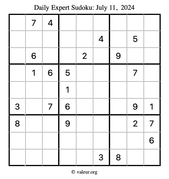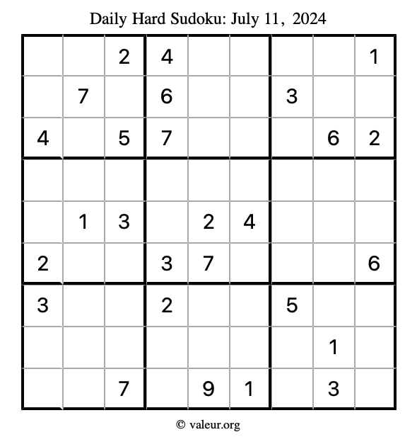 Here are the July 11, 2024 daily four sudoku puzzles. You are welcome to print a copy of the puzzles and solve them by hand. For your convenience, we have also included the solutions further down the page so you can check your work.