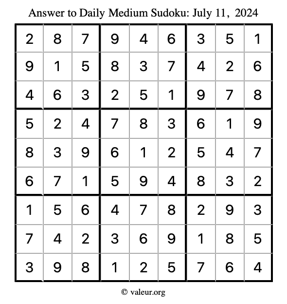 Daily Four Sudoku Puzzles July 11, 2024 is not the only daily set of sudoku puzzles we have. We create four sudoku puzzles every day for you to print and solve. Check out today's set of four sudoku puzzles here!