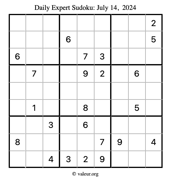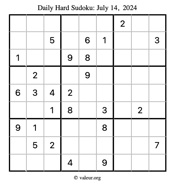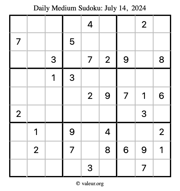 Daily Four Sudoku Puzzles July 14, 2024 is not the only daily set of sudoku puzzles we have. We create four sudoku puzzles every day for you to print and solve. Check out today's set of four sudoku puzzles here!