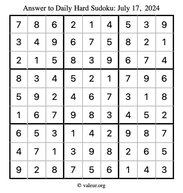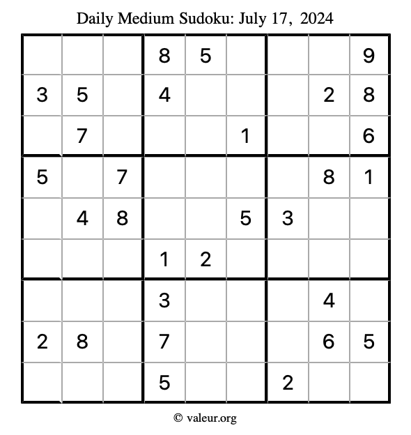 Daily Four Sudoku Puzzles July 17, 2024 is not the only daily set of sudoku puzzles we have. We create four sudoku puzzles every day for you to print and solve. Check out today's set of four sudoku puzzles here!