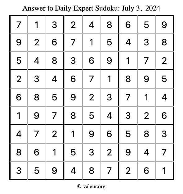 Daily Four Sudoku Puzzles July 3, 2024 is not the only daily set of sudoku puzzles we have. We create four sudoku puzzles every day for you to print and solve. Check out today's set of four sudoku puzzles here!