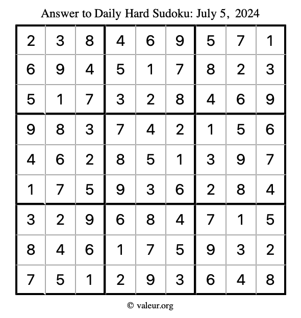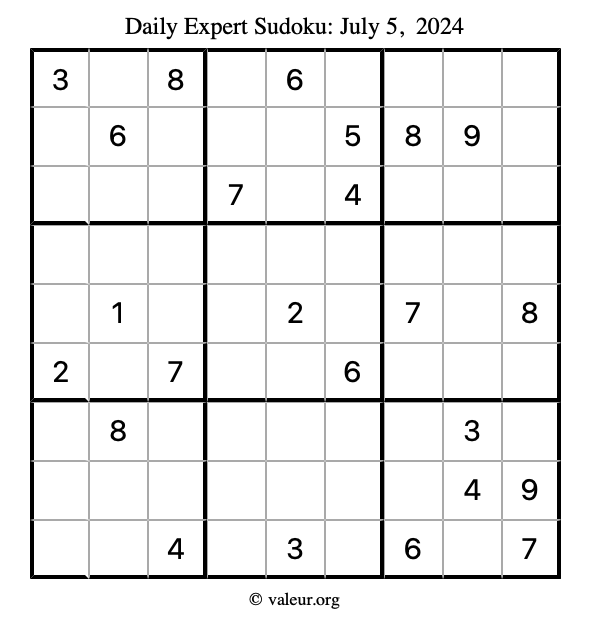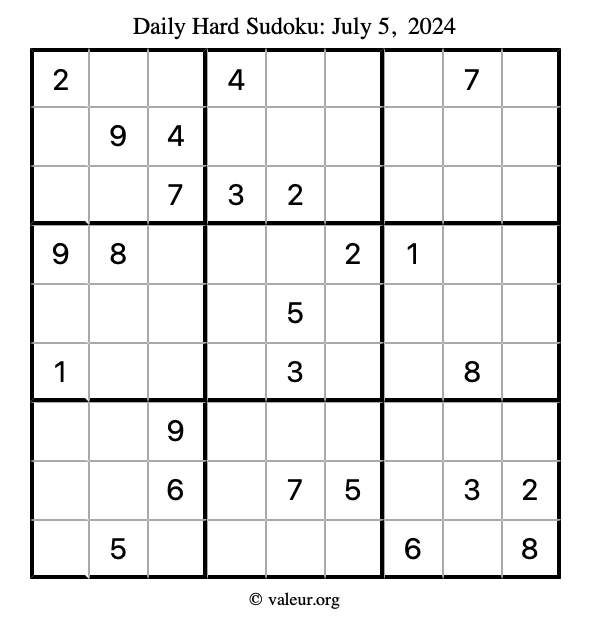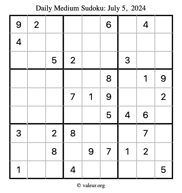 Daily Four Sudoku Puzzles July 5, 2024 is not the only daily set of sudoku puzzles we have. We create four sudoku puzzles every day for you to print and solve. Check out today's set of four sudoku puzzles here!