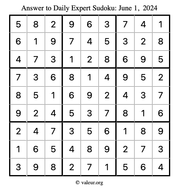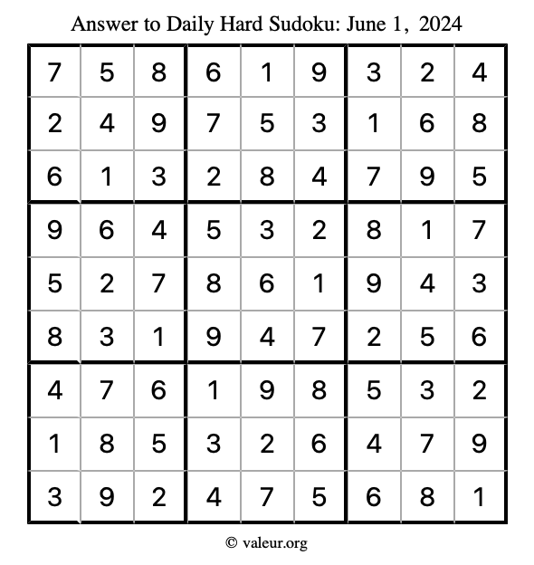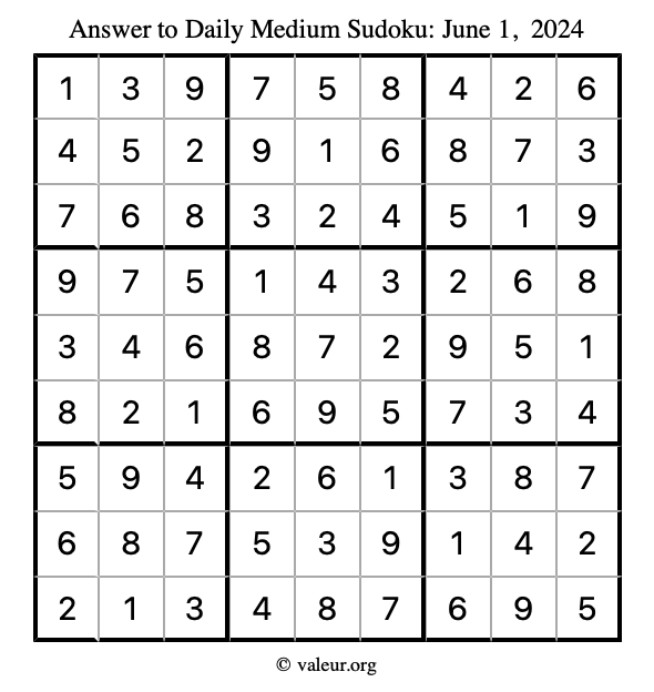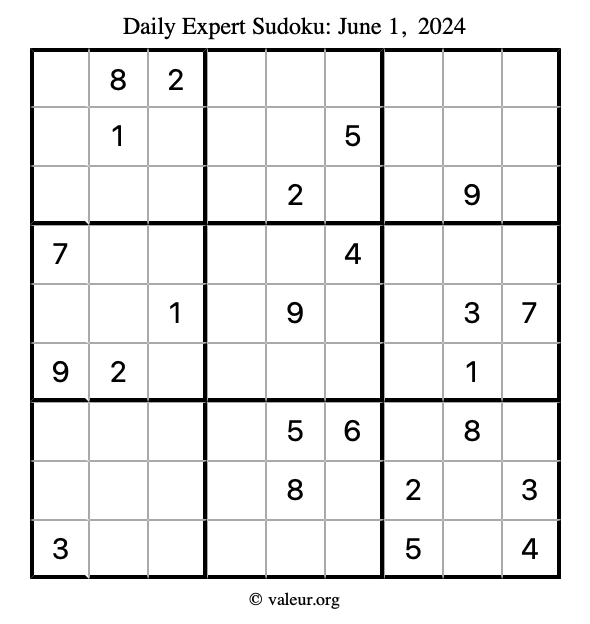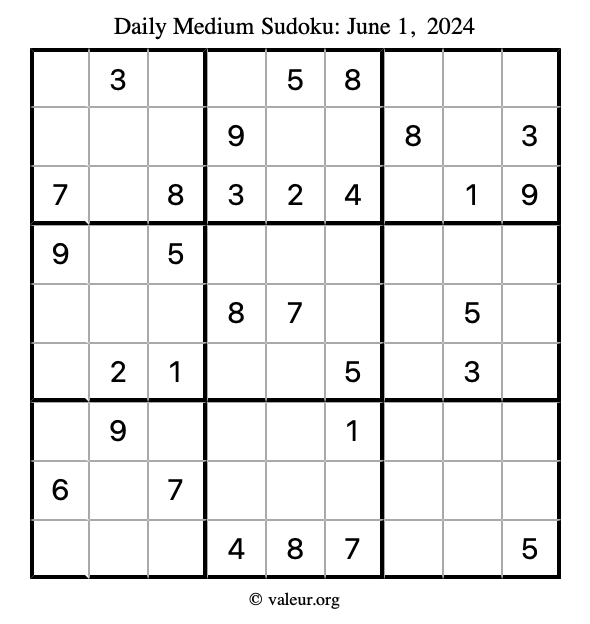 Here are the June 1, 2024 daily four sudoku puzzles. You are welcome to print a copy of the puzzles and solve them by hand. For your convenience, we have also included the solutions further down the page so you can check your work.