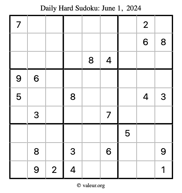Daily Four Sudoku Puzzles June 1, 2024 is not the only daily set of sudoku puzzles we have. We create four sudoku puzzles every day for you to print and solve. Check out today's set of four sudoku puzzles here!