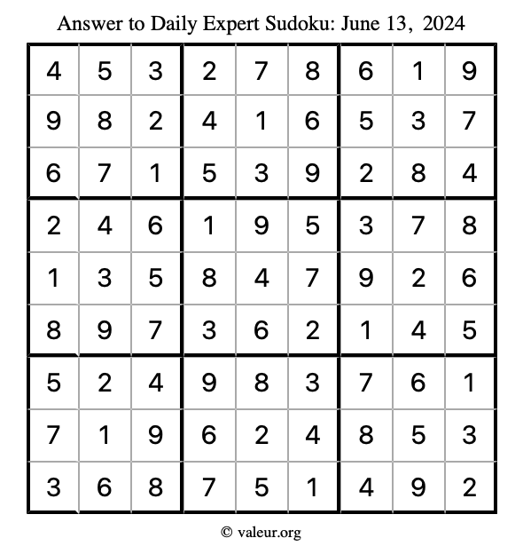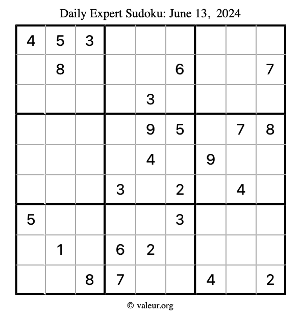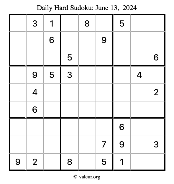Daily Four Sudoku Puzzles June 13, 2024 is not the only daily set of sudoku puzzles we have. We create four sudoku puzzles every day for you to print and solve. Check out today's set of four sudoku puzzles here!