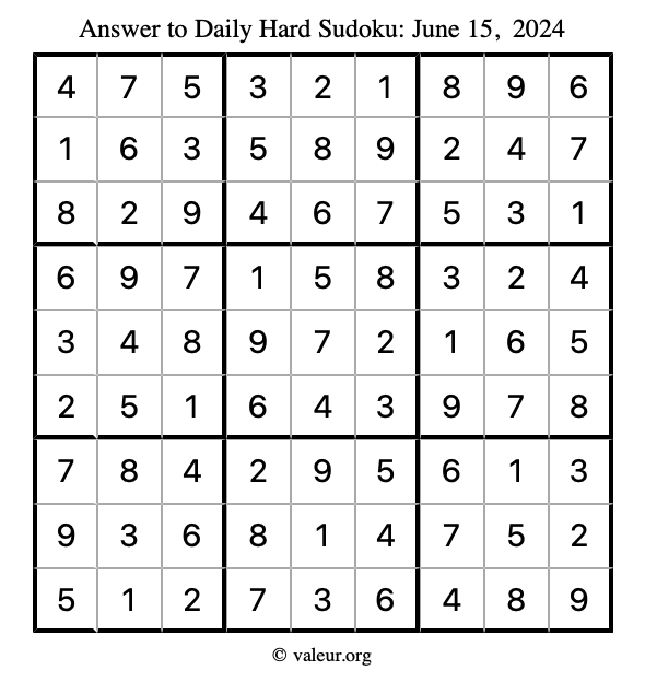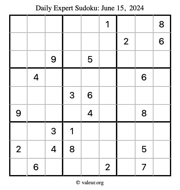 Here are the June 15, 2024 daily four sudoku puzzles. You are welcome to print a copy of the puzzles and solve them by hand. For your convenience, we have also included the solutions further down the page so you can check your work.