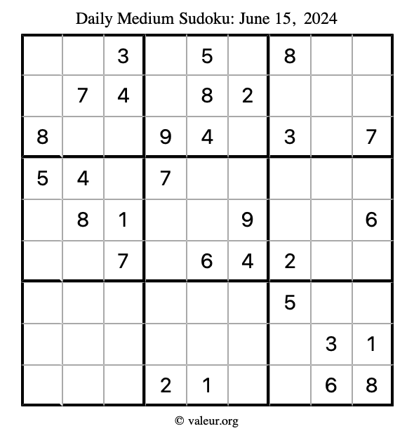 Daily Four Sudoku Puzzles June 15, 2024 is not the only daily set of sudoku puzzles we have. We create four sudoku puzzles every day for you to print and solve. Check out today's set of four sudoku puzzles here!