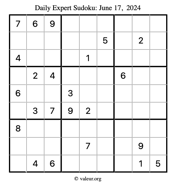 Here are the June 17, 2024 daily four sudoku puzzles. You are welcome to print a copy of the puzzles and solve them by hand. For your convenience, we have also included the solutions further down the page so you can check your work.