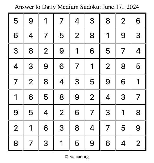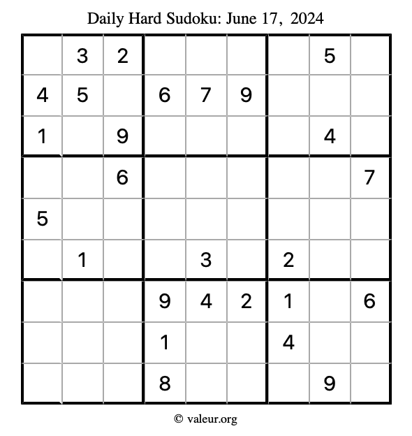 Daily Four Sudoku Puzzles June 17, 2024 is not the only daily set of sudoku puzzles we have. We create four sudoku puzzles every day for you to print and solve. Check out today's set of four sudoku puzzles here!