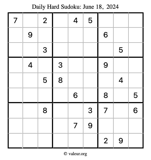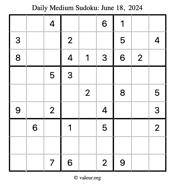 Daily Four Sudoku Puzzles June 18, 2024 is not the only daily set of sudoku puzzles we have. We create four sudoku puzzles every day for you to print and solve. Check out today's set of four sudoku puzzles here!