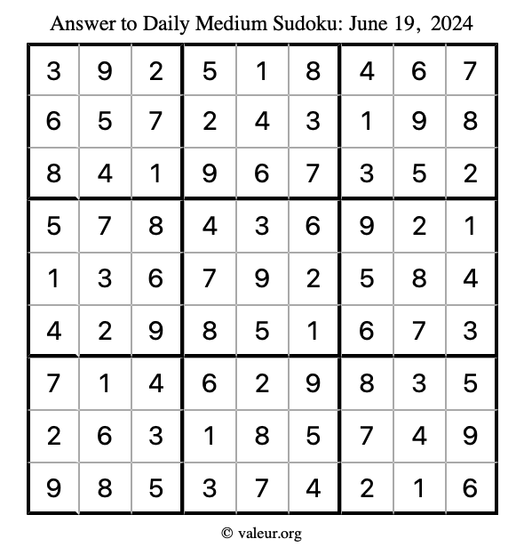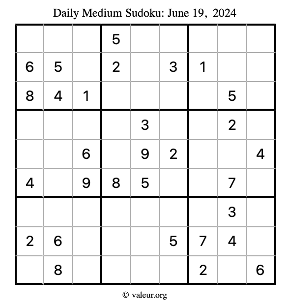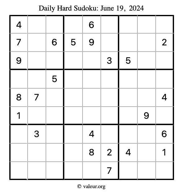 Daily Four Sudoku Puzzles June 19, 2024 is not the only daily set of sudoku puzzles we have. We create four sudoku puzzles every day for you to print and solve. Check out today's set of four sudoku puzzles here!