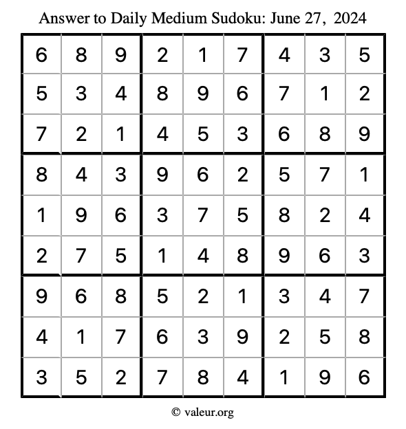 Daily Four Sudoku Puzzles June 27, 2024 is not the only daily set of sudoku puzzles we have. We create four sudoku puzzles every day for you to print and solve. Check out today's set of four sudoku puzzles here!