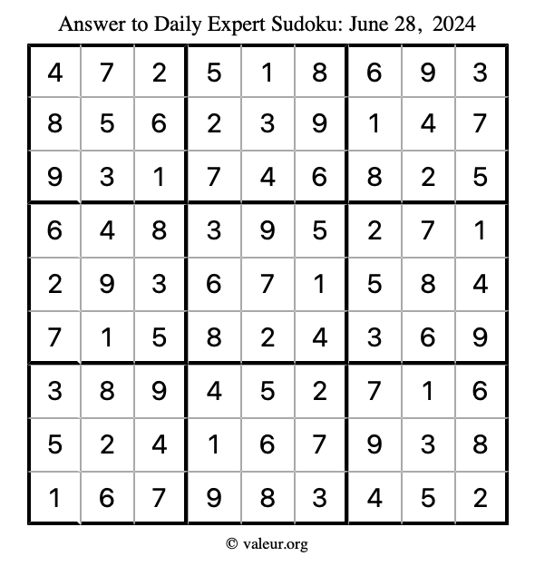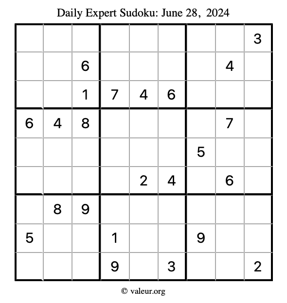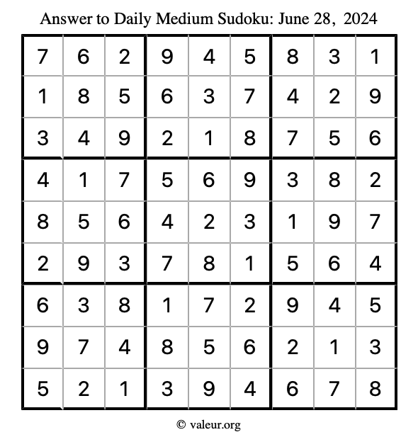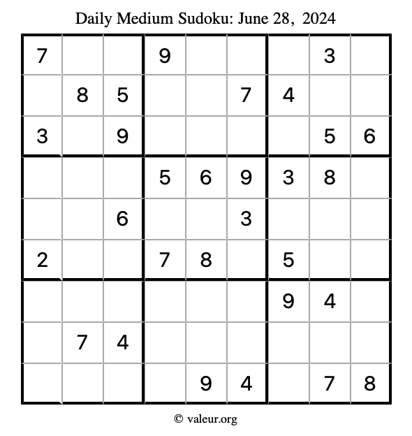 Daily Four Sudoku Puzzles June 28, 2024 is not the only daily set of sudoku puzzles we have. We create four sudoku puzzles every day for you to print and solve. Check out today's set of four sudoku puzzles here!