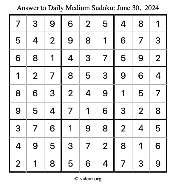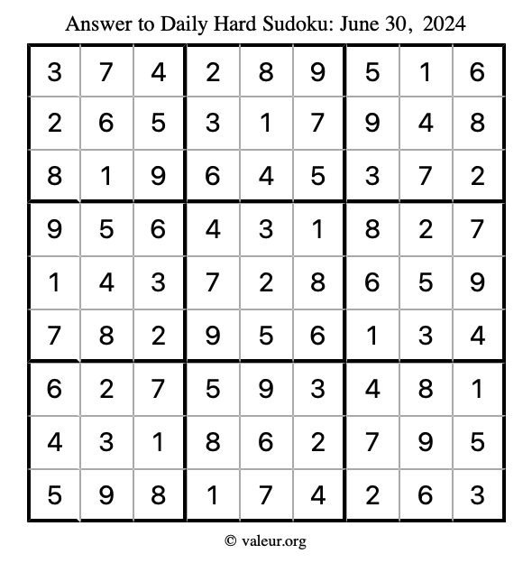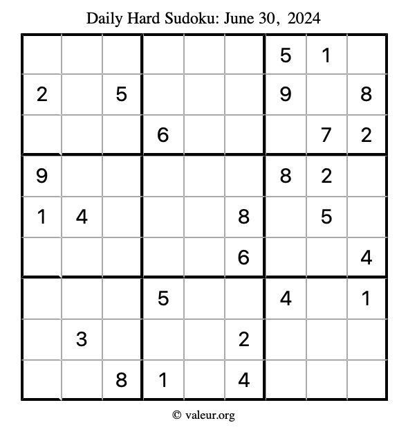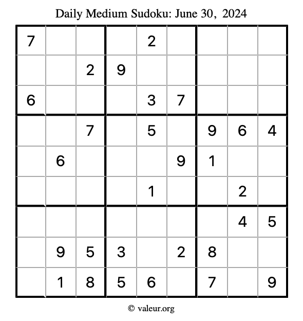 Daily Four Sudoku Puzzles June 30, 2024 is not the only daily set of sudoku puzzles we have. We create four sudoku puzzles every day for you to print and solve. Check out today's set of four sudoku puzzles here!