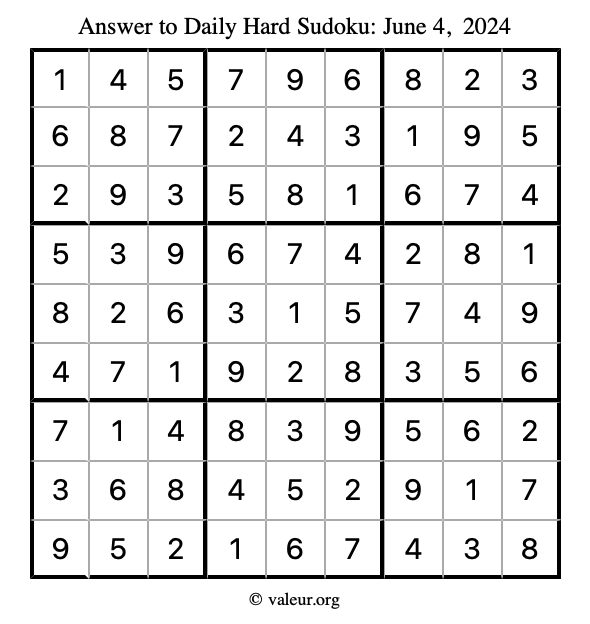 Here are the June 4, 2024 daily four sudoku puzzles. You are welcome to print a copy of the puzzles and solve them by hand. For your convenience, we have also included the solutions further down the page so you can check your work.