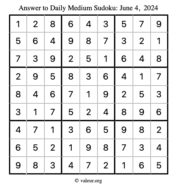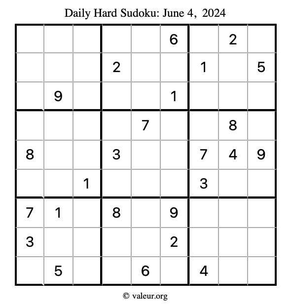 Daily Four Sudoku Puzzles June 4, 2024 is not the only daily set of sudoku puzzles we have. We create four sudoku puzzles every day for you to print and solve. Check out today's set of four sudoku puzzles here!