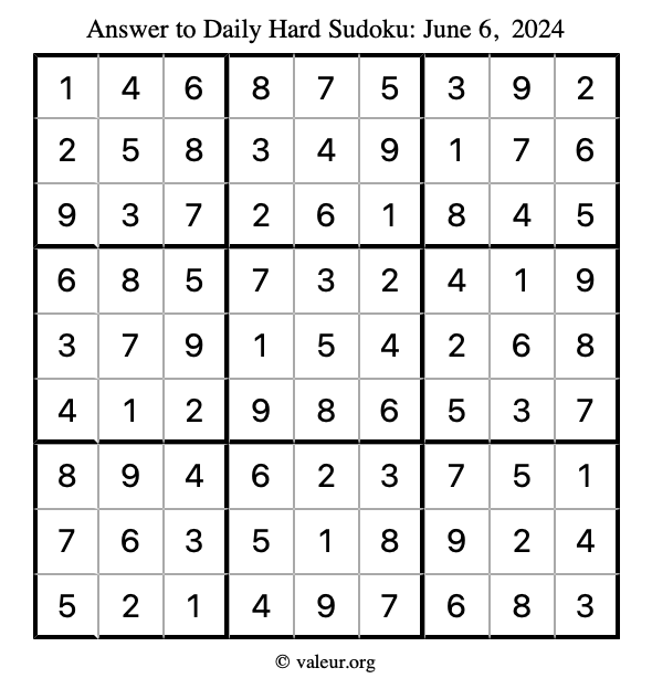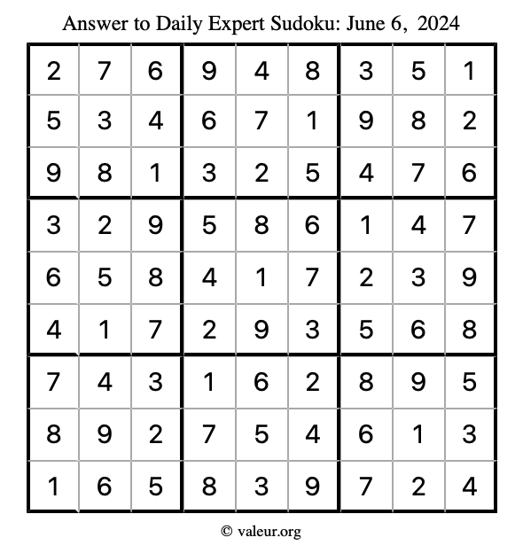 Here are the June 6, 2024 daily four sudoku puzzles. You are welcome to print a copy of the puzzles and solve them by hand. For your convenience, we have also included the solutions further down the page so you can check your work.