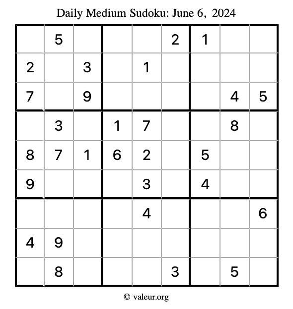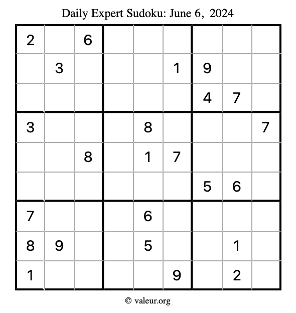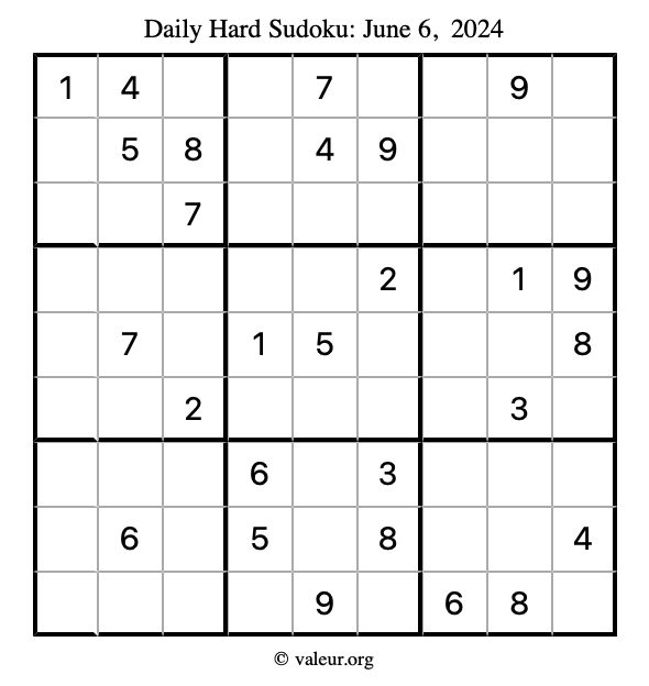 Daily Four Sudoku Puzzles June 6, 2024 is not the only daily set of sudoku puzzles we have. We create four sudoku puzzles every day for you to print and solve. Check out today's set of four sudoku puzzles here!