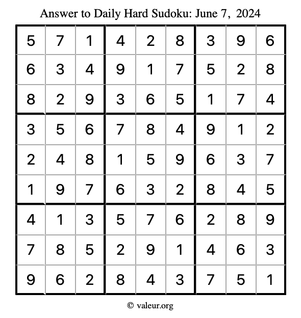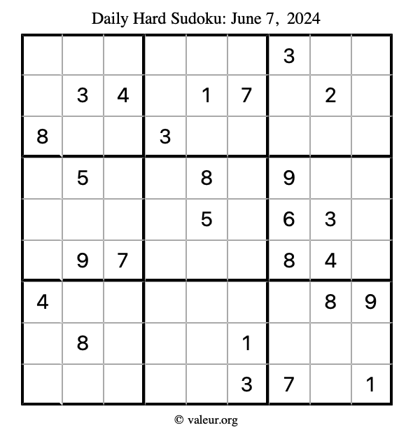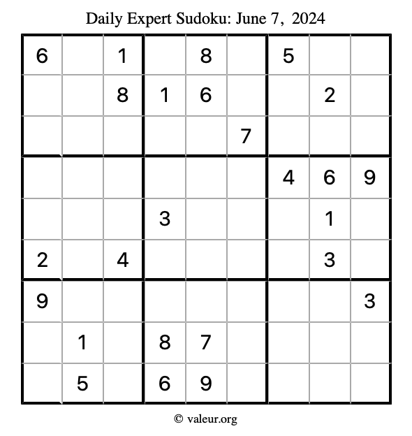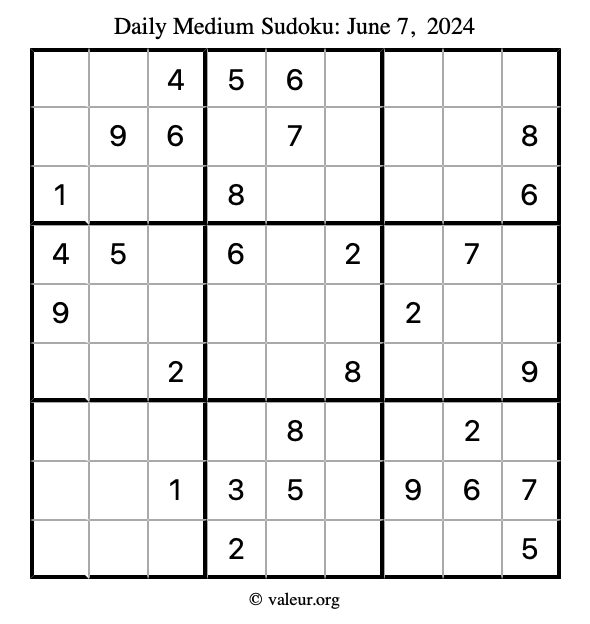 Daily Four Sudoku Puzzles June 7, 2024 is not the only daily set of sudoku puzzles we have. We create four sudoku puzzles every day for you to print and solve. Check out today's set of four sudoku puzzles here!