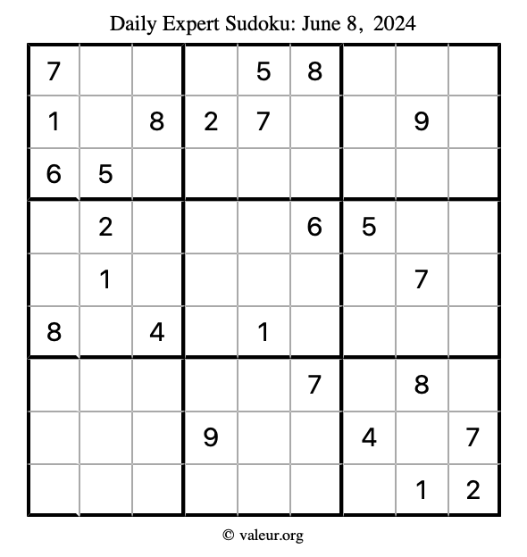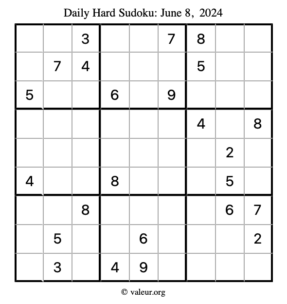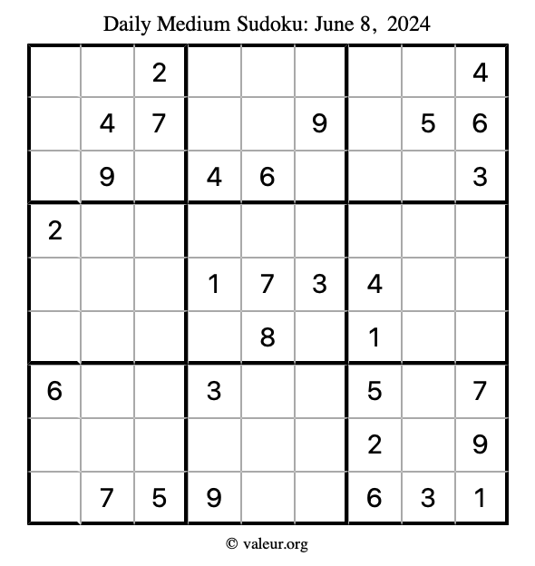 Daily Four Sudoku Puzzles June 8, 2024 is not the only daily set of sudoku puzzles we have. We create four sudoku puzzles every day for you to print and solve. Check out today's set of four sudoku puzzles here!