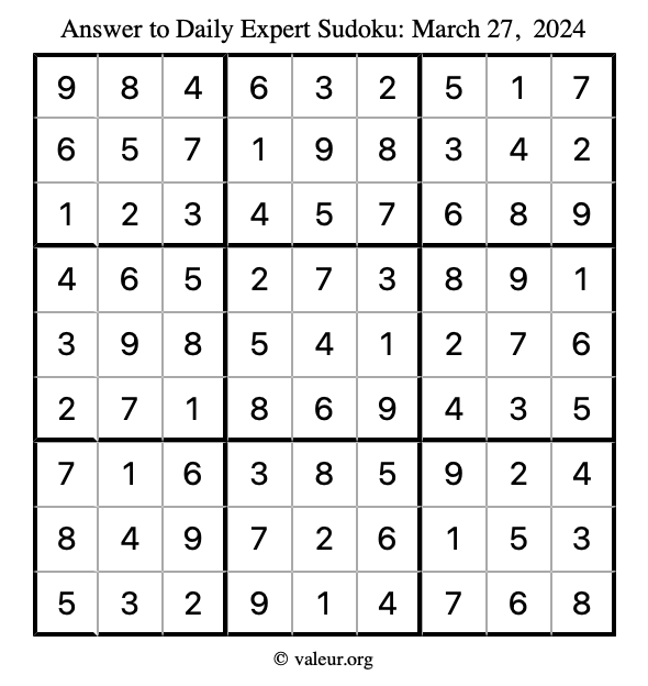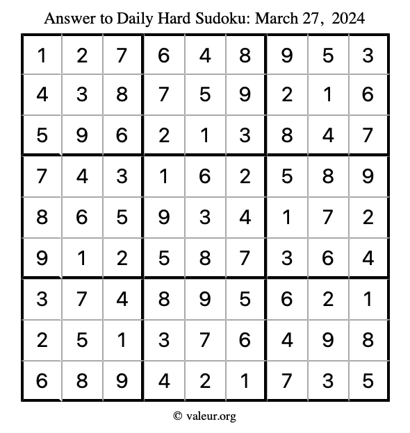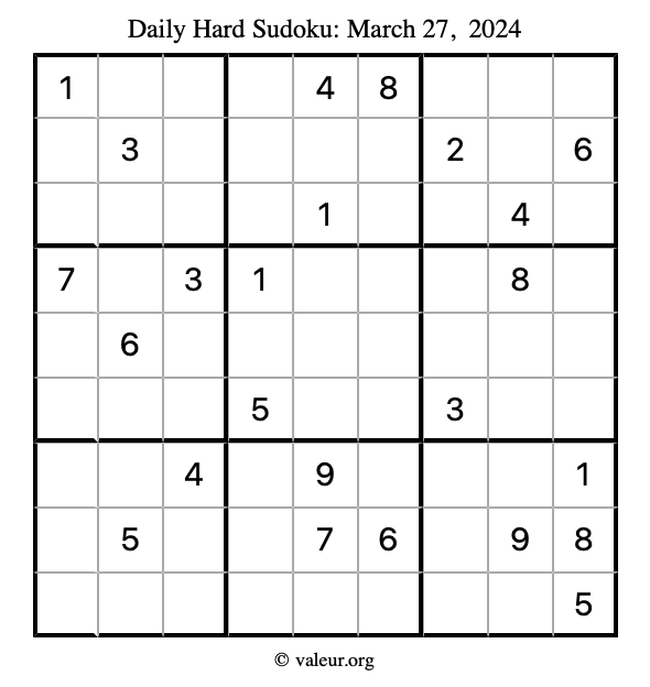 Here are the March 27, 2024 daily four sudoku puzzles. You are welcome to print a copy of the puzzles and solve them by hand. For your convenience, we have also included the solutions further down the page so you can check your work.