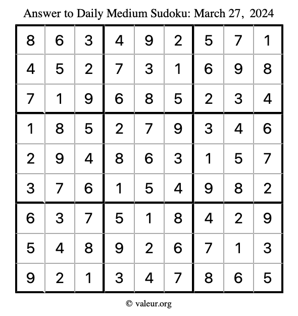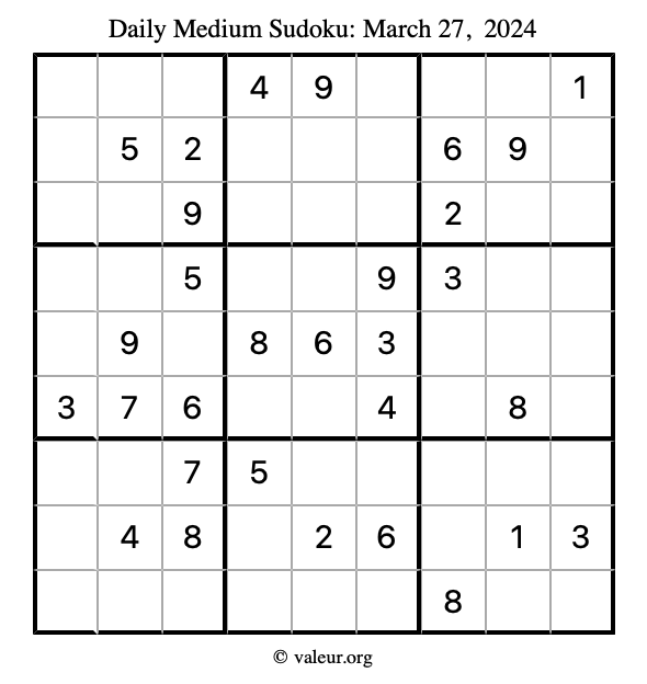 Daily Four Sudoku Puzzles March 27, 2024 is not the only daily set of sudoku puzzles we have. We create four sudoku puzzles every day for you to print and solve. Check out today's set of four sudoku puzzles here!