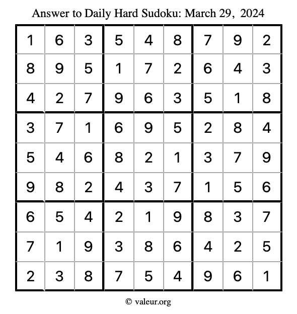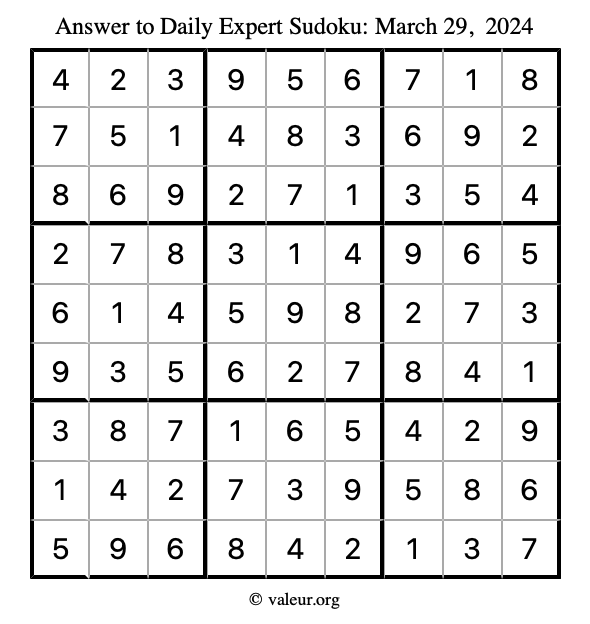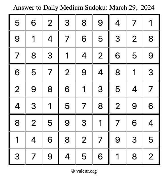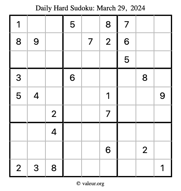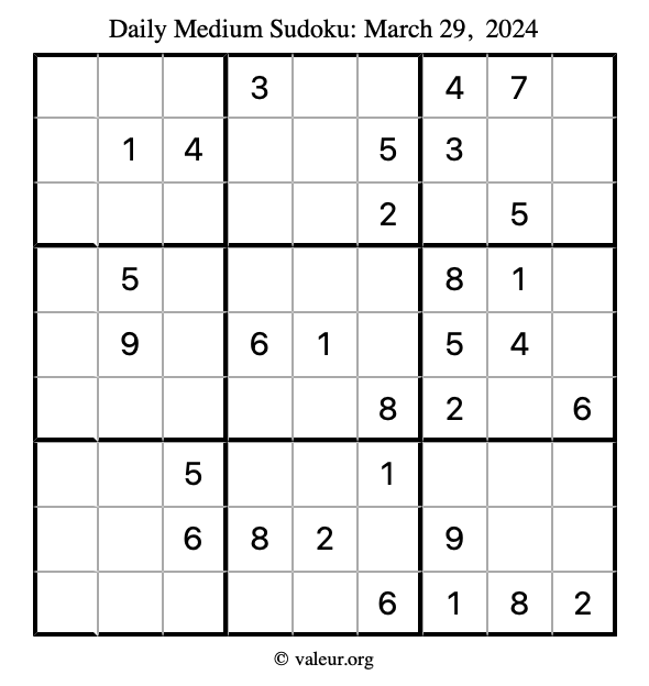 Daily Four Sudoku Puzzles March 29, 2024 is not the only daily set of sudoku puzzles we have. We create four sudoku puzzles every day for you to print and solve. Check out today's set of four sudoku puzzles here!
