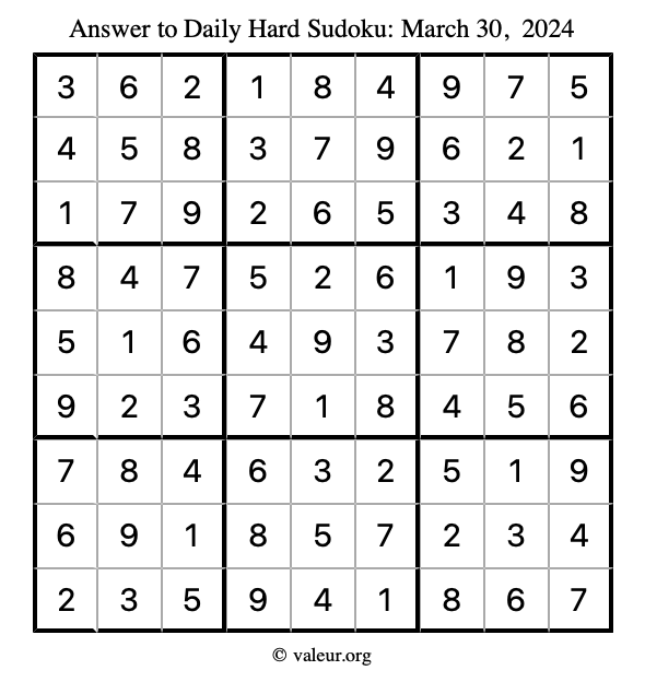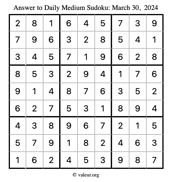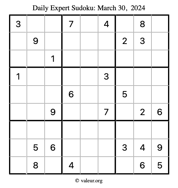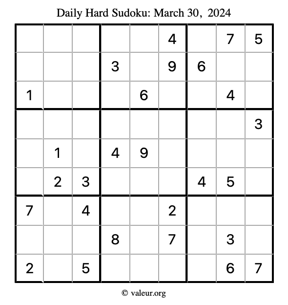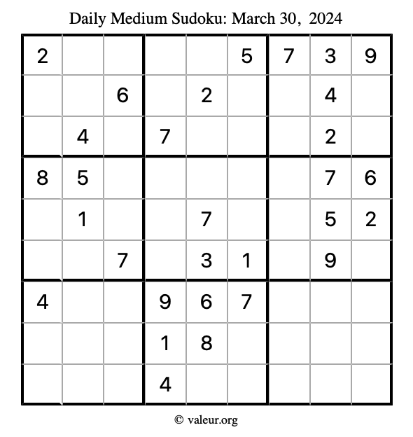Daily Four Sudoku Puzzles March 30, 2024 is not the only daily set of sudoku puzzles we have. We create four sudoku puzzles every day for you to print and solve. Check out today's set of four sudoku puzzles here!
