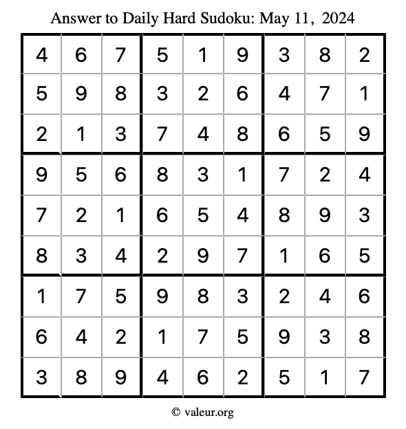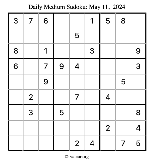 Daily Four Sudoku Puzzles May 11, 2024 is not the only daily set of sudoku puzzles we have. We create four sudoku puzzles every day for you to print and solve. Check out today's set of four sudoku puzzles here!