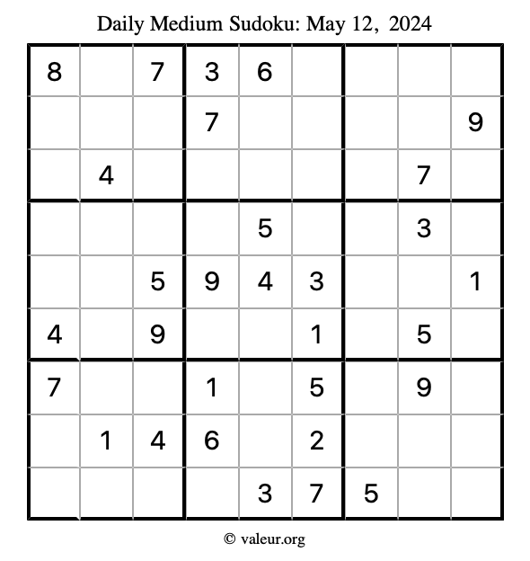 Daily Four Sudoku Puzzles May 12, 2024 is not the only daily set of sudoku puzzles we have. We create four sudoku puzzles every day for you to print and solve. Check out today's set of four sudoku puzzles here!