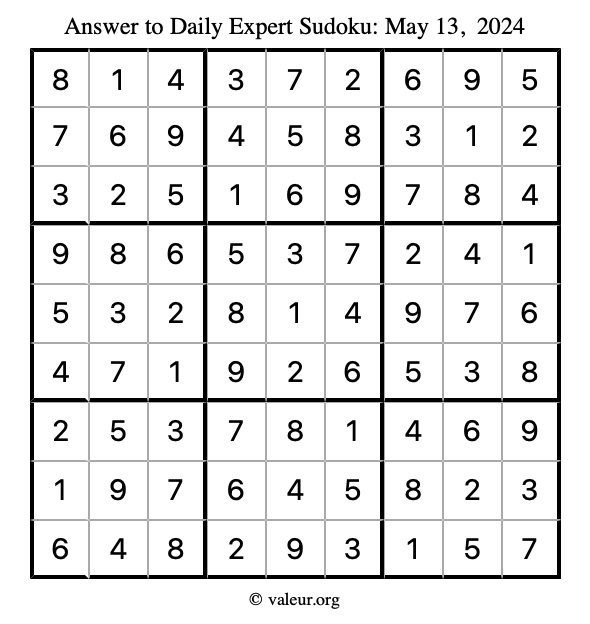 Here are the May 13, 2024 daily four sudoku puzzles. You are welcome to print a copy of the puzzles and solve them by hand. For your convenience, we have also included the solutions further down the page so you can check your work.