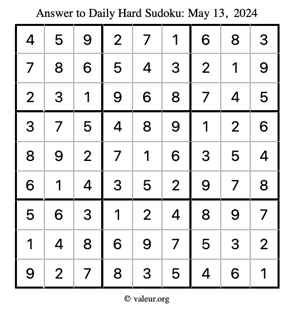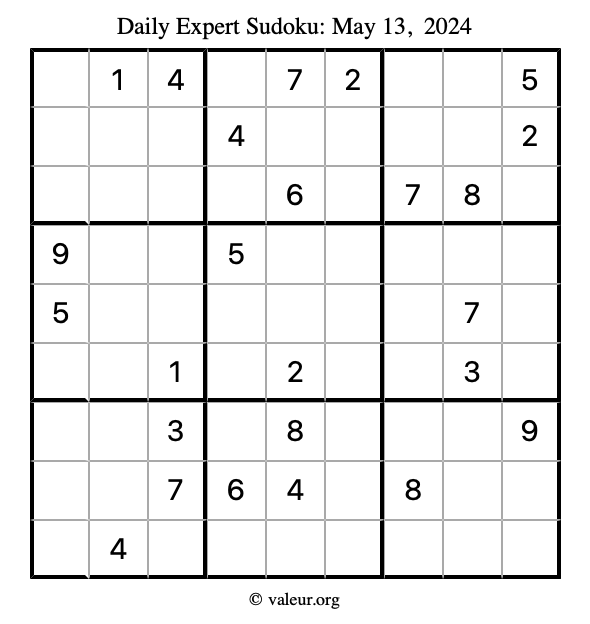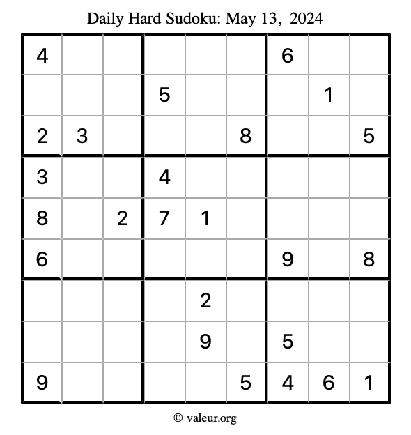 Daily Four Sudoku Puzzles May 13, 2024 is not the only daily set of sudoku puzzles we have. We create four sudoku puzzles every day for you to print and solve. Check out today's set of four sudoku puzzles here!