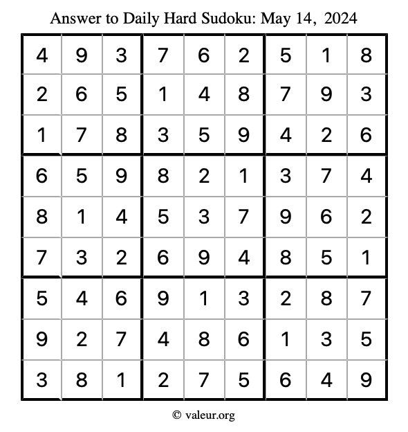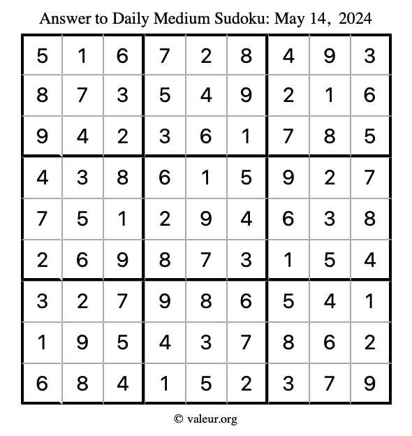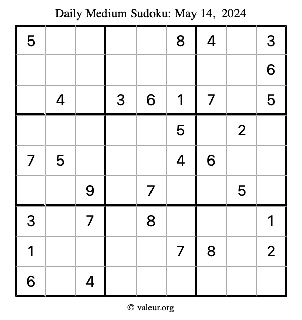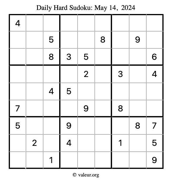 Daily Four Sudoku Puzzles May 14, 2024 is not the only daily set of sudoku puzzles we have. We create four sudoku puzzles every day for you to print and solve. Check out today's set of four sudoku puzzles here!