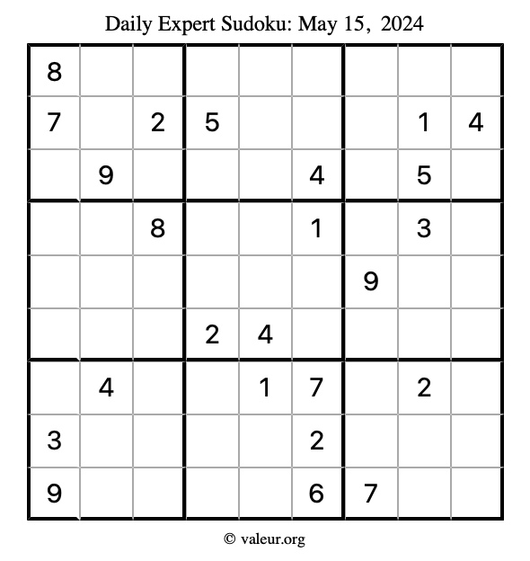 Here are the May 15, 2024 daily four sudoku puzzles. You are welcome to print a copy of the puzzles and solve them by hand. For your convenience, we have also included the solutions further down the page so you can check your work.