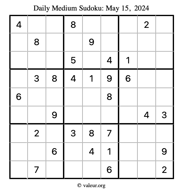 Daily Four Sudoku Puzzles May 15, 2024 is not the only daily set of sudoku puzzles we have. We create four sudoku puzzles every day for you to print and solve. Check out today's set of four sudoku puzzles here!