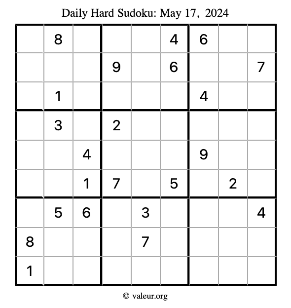 Daily Four Sudoku Puzzles May 17, 2024 is not the only daily set of sudoku puzzles we have. We create four sudoku puzzles every day for you to print and solve. Check out today's set of four sudoku puzzles here!
