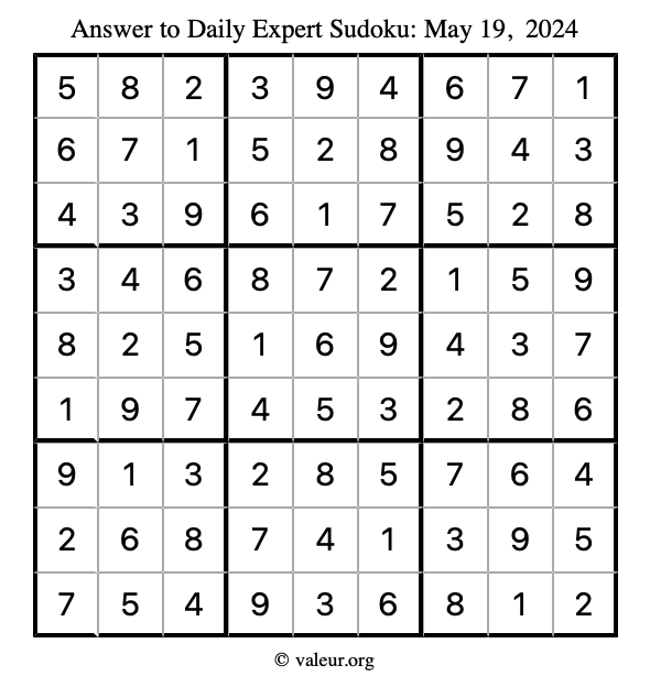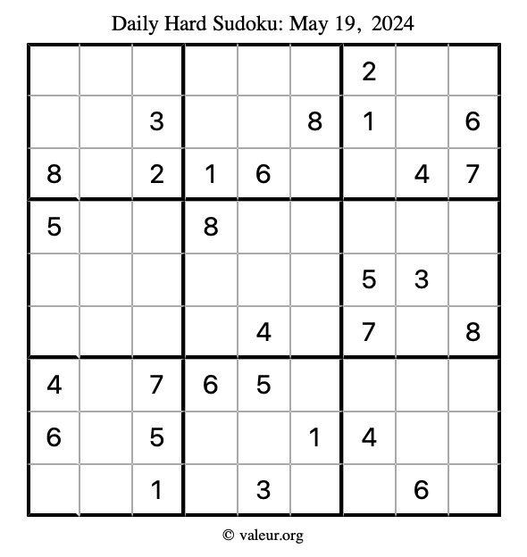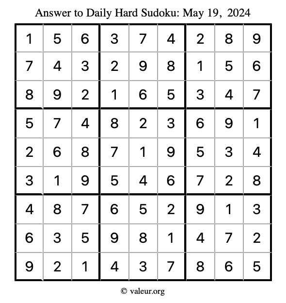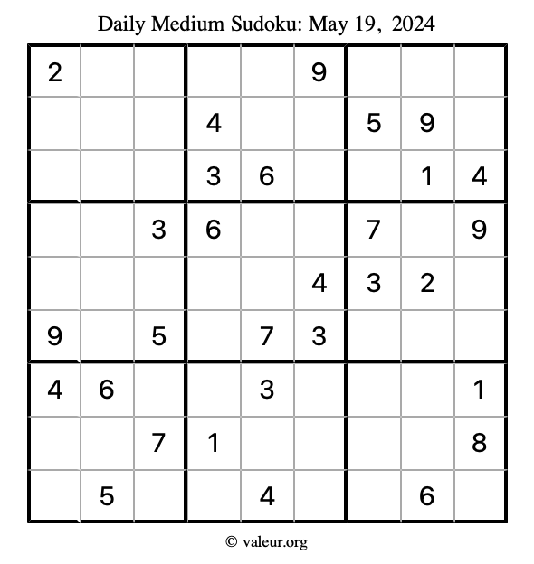 Here are the May 19, 2024 daily four sudoku puzzles. You are welcome to print a copy of the puzzles and solve them by hand. For your convenience, we have also included the solutions further down the page so you can check your work.