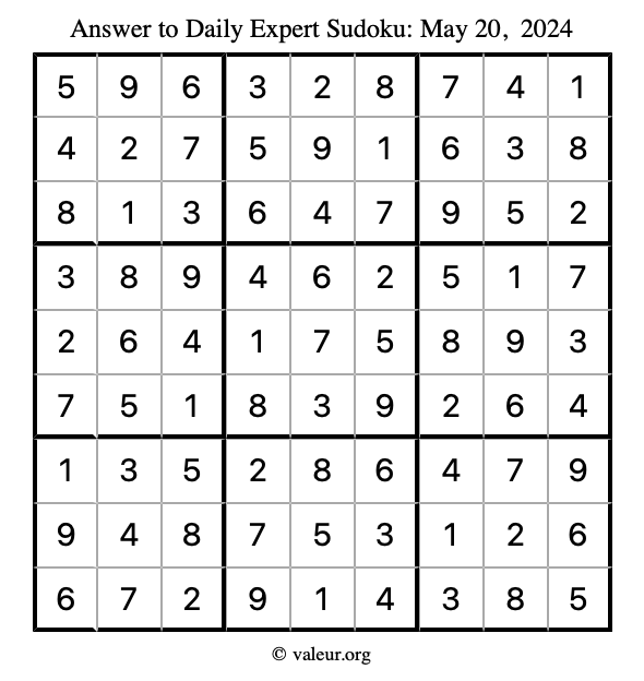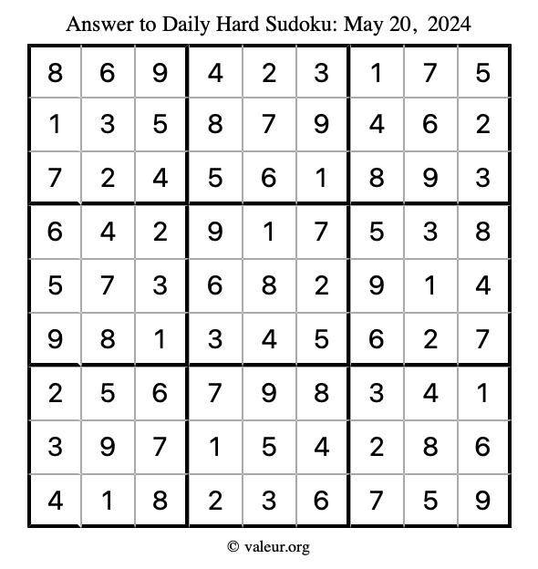 Here are the May 20, 2024 daily four sudoku puzzles. You are welcome to print a copy of the puzzles and solve them by hand. For your convenience, we have also included the solutions further down the page so you can check your work.