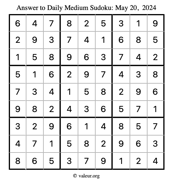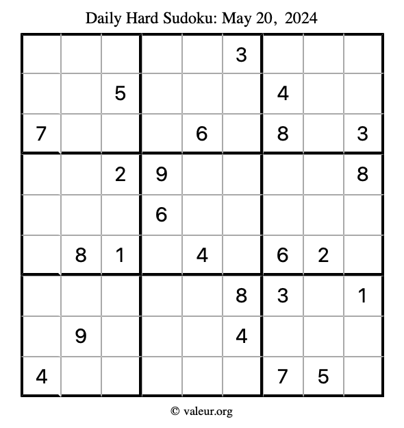 Daily Four Sudoku Puzzles May 20, 2024 is not the only daily set of sudoku puzzles we have. We create four sudoku puzzles every day for you to print and solve. Check out today's set of four sudoku puzzles here!
