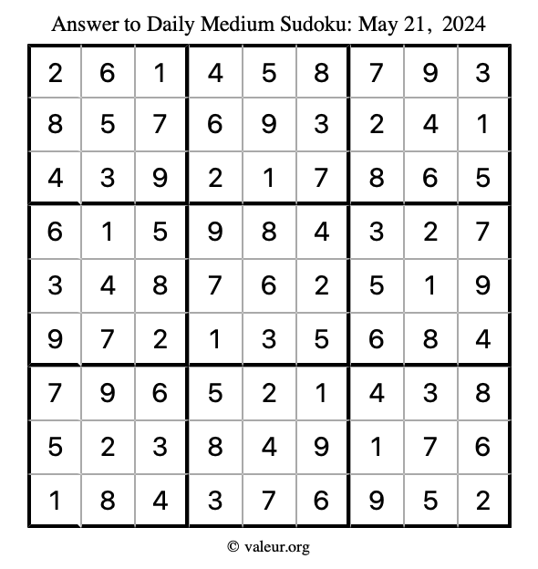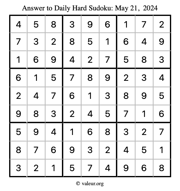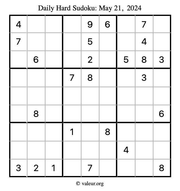 Here are the May 21, 2024 daily four sudoku puzzles. You are welcome to print a copy of the puzzles and solve them by hand. For your convenience, we have also included the solutions further down the page so you can check your work.